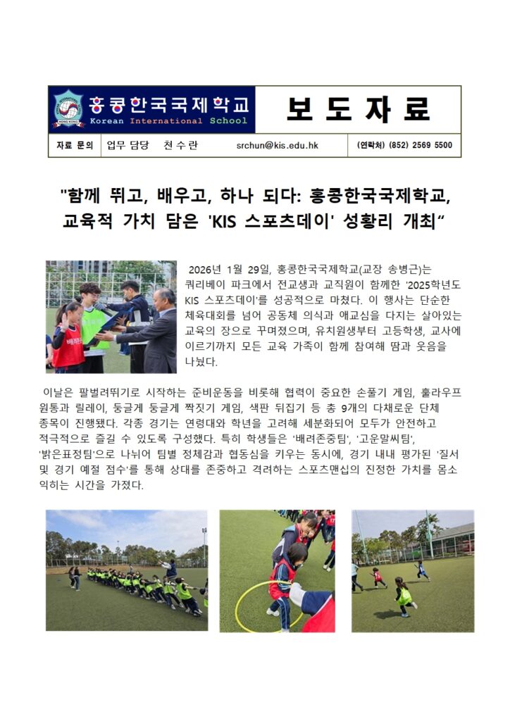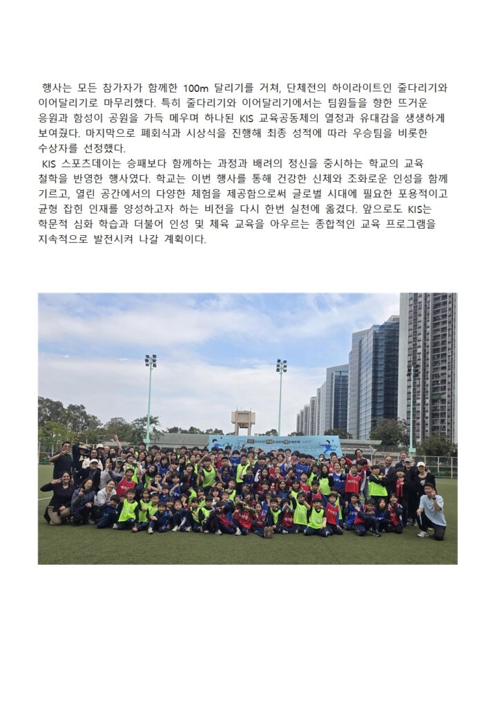 2025 홍콩한국국제학교 스포츠 데이:”함께 뛰고, 배우고, 하나되다”