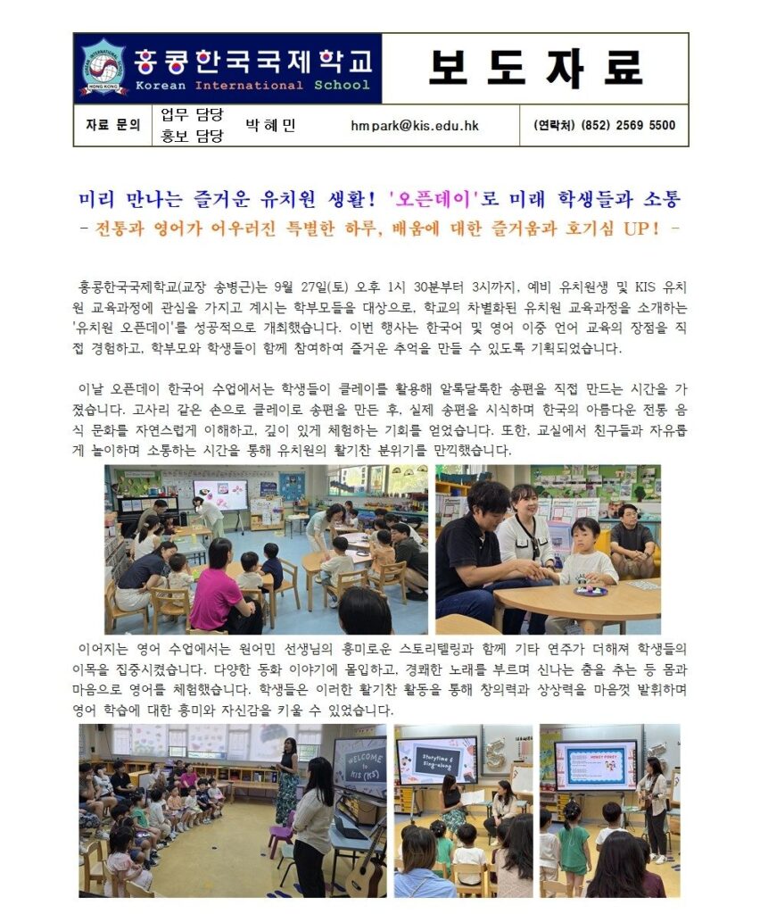2025 홍콩한국국제학교 ‘유치원 Open Day’
