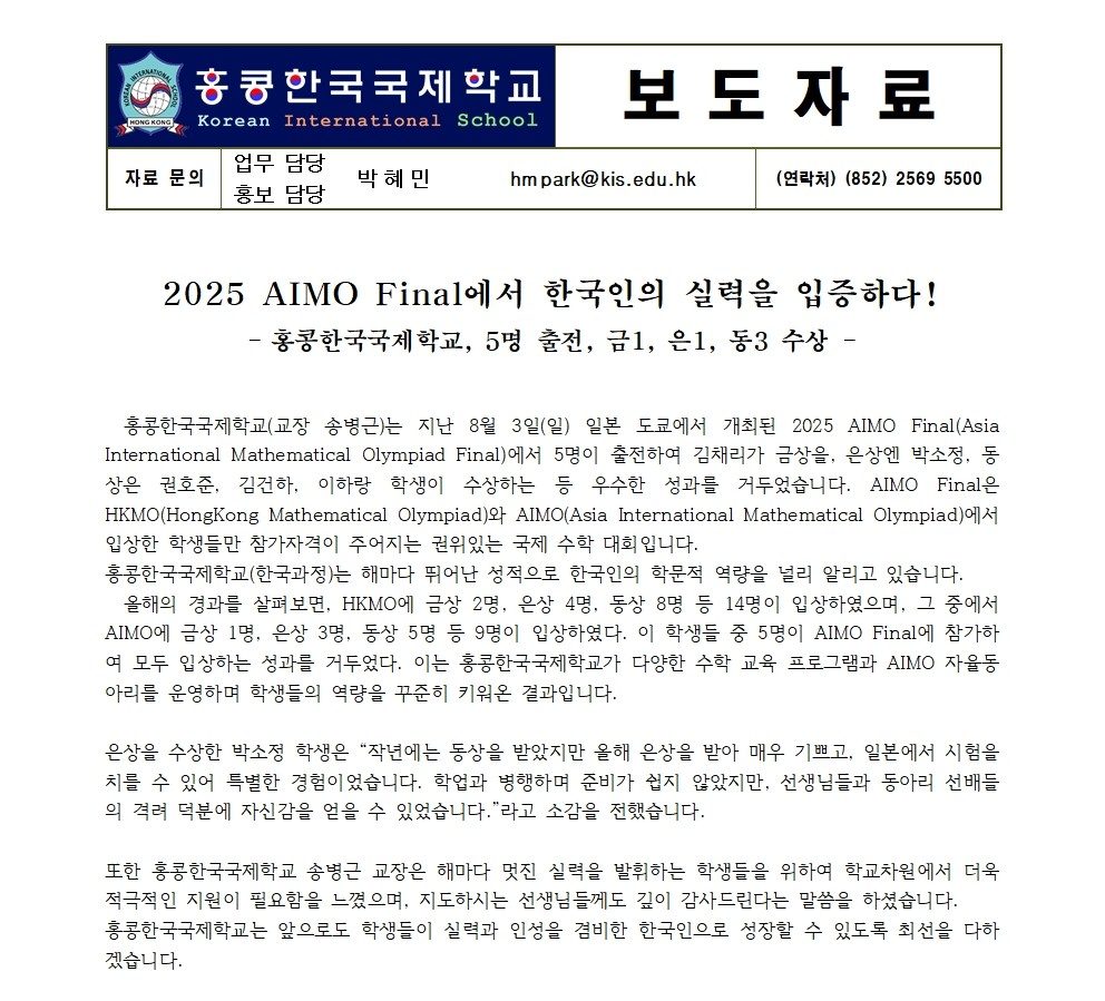 2025 홍콩한국국제학교 ‘Art Week’ 행사