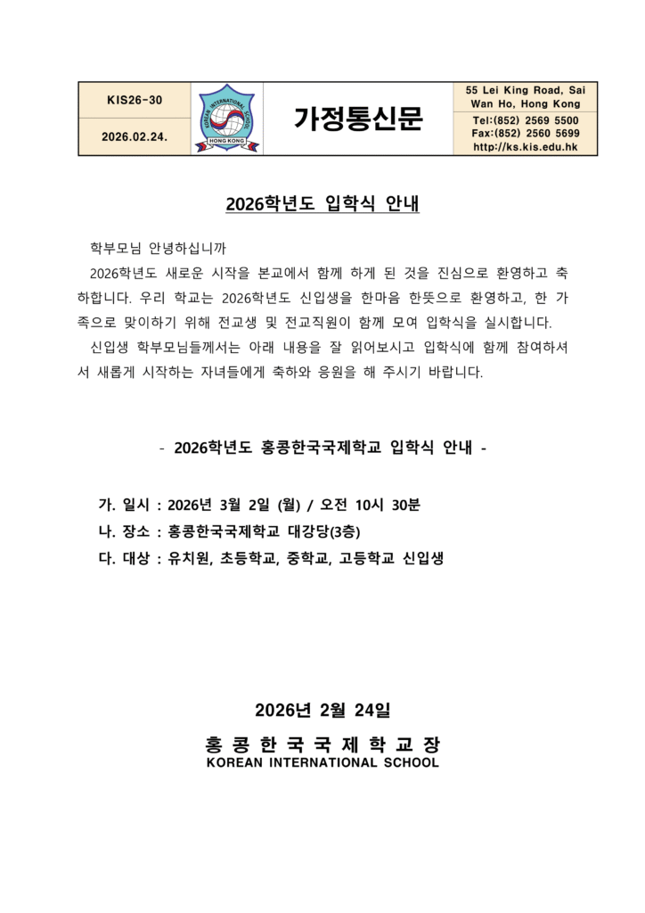 3월 급식 신청 안내 2026년 3월 점심 도시락 신청 링크 안내드립니다. https://forms.gle/DGrejMcsL445R7REA 급식을 희망하실 경우 2월 19일(목) 11:59 오전까지 신청하시고, 2월 20일(금)까지 비용을 납부해 주셔야 합니다.자세한 사항은 위 링크 및 첨부해 드린 문서를 확인해 주시기 바랍니다. 늦어도 이번주까지는 마무리 해주시면 감사드리겠습니다. *2026 학사일정(유초등, 중고등)을 홈페이지에서 꼭 확인 바랍니다.감사합니다.